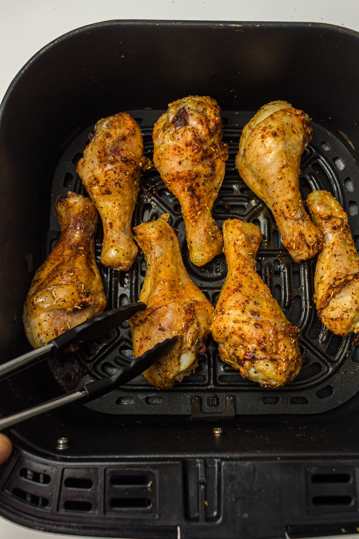 About halfway through the cooking time (around the 10-12 minute mark), open the basket and flip the drumsticks over. This ensures they brown evenly on all sides.