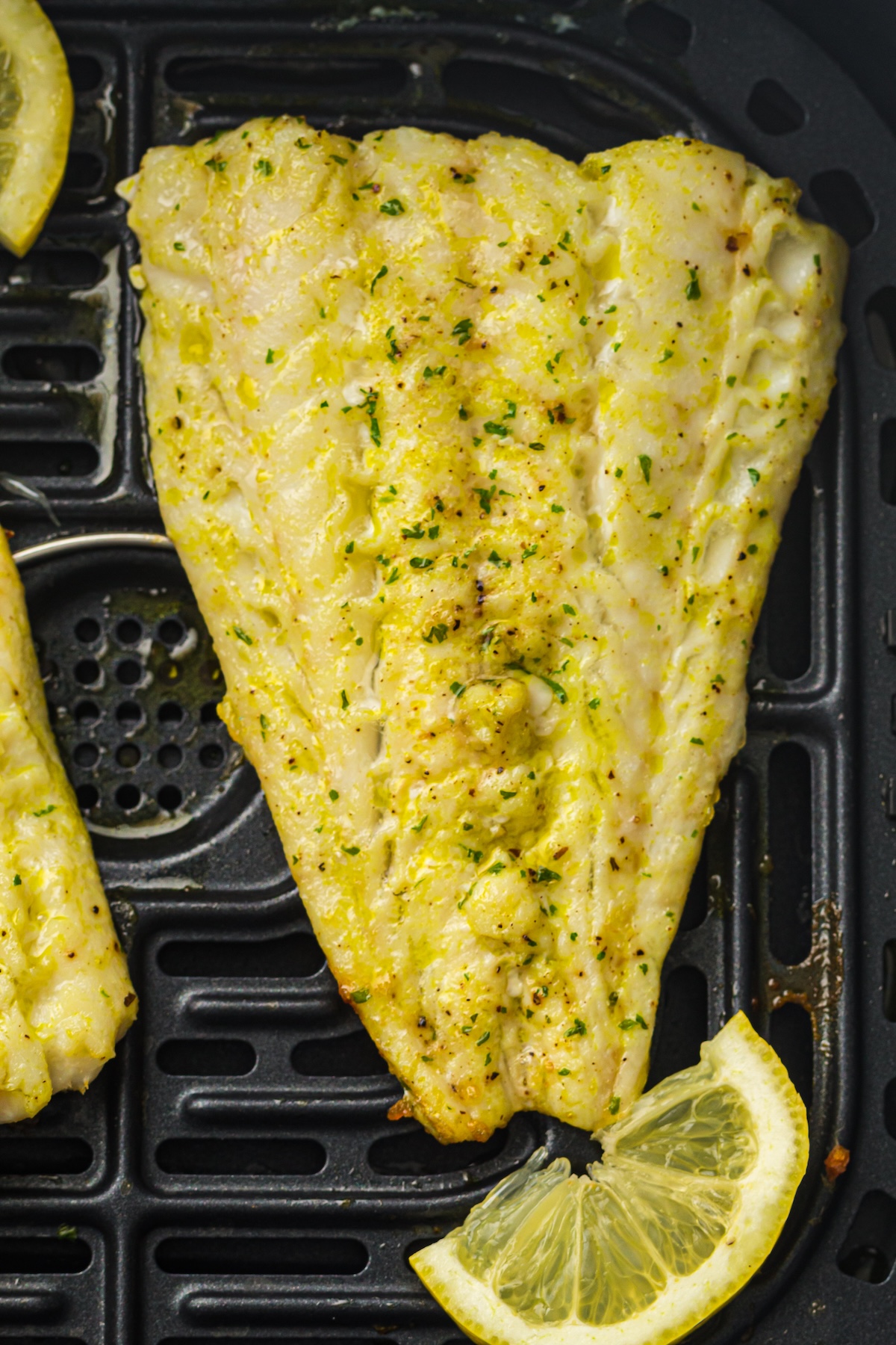 Nope, you can skip the flip! One of the great things about air frying delicate fish is that the hot air circulates all around the food, cooking it evenly without you having to risk breaking the fillets by flipping them.