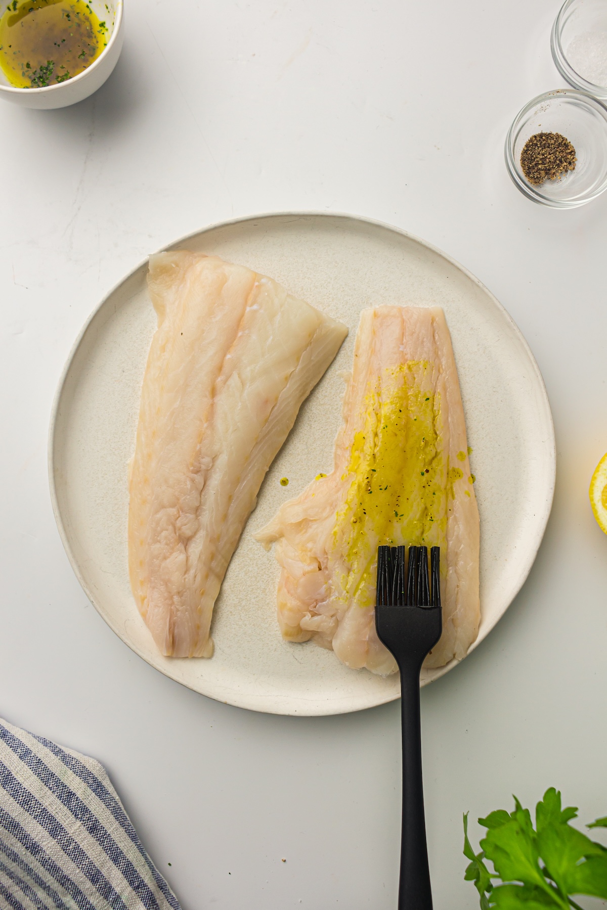 - Brush the seasoned oil mixture over both sides of the cod fillets, ensuring they are evenly coated.