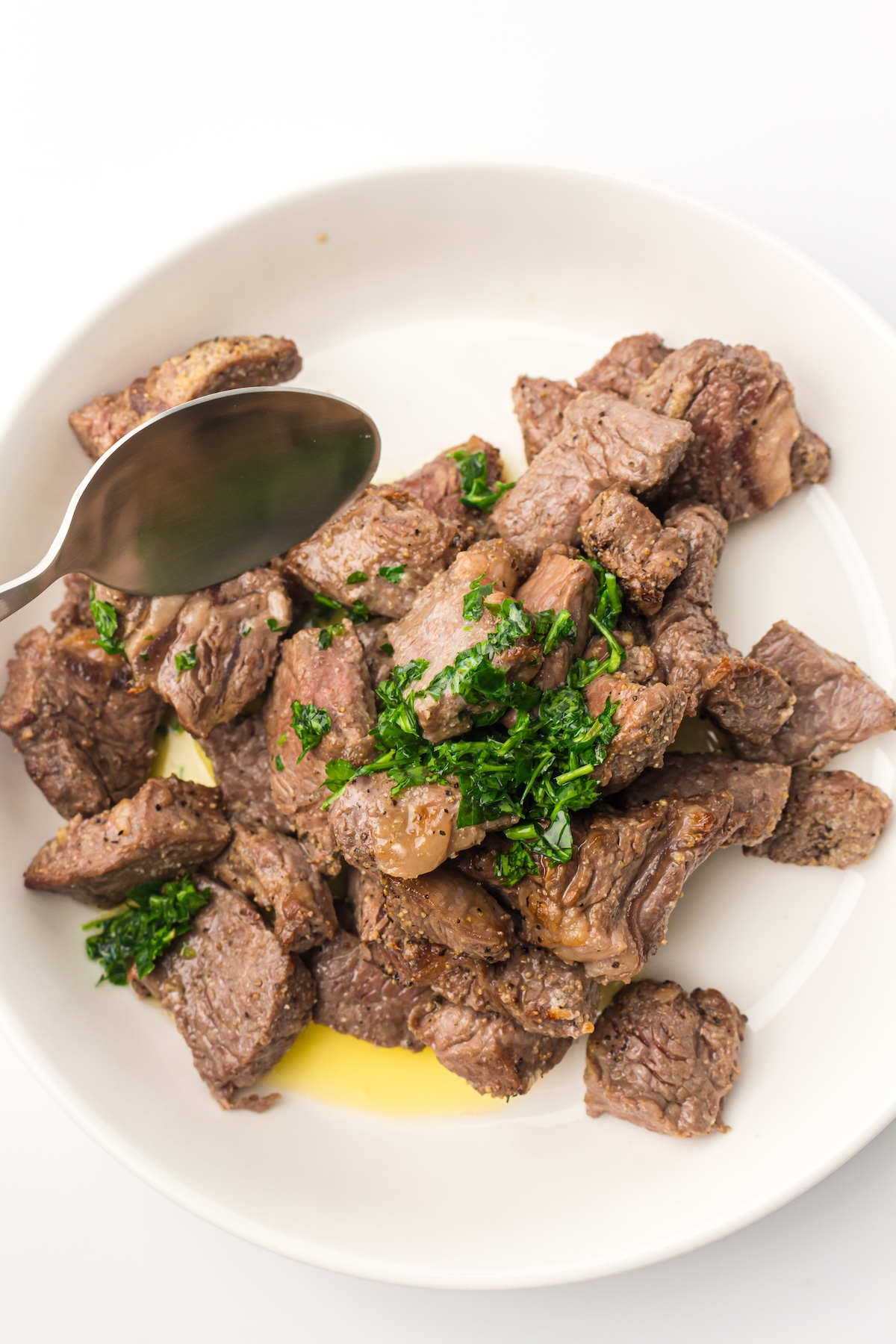 Now for the grand finale that takes these from great to absolutely divine. Drizzle the melted butter over the warm steak bites and toss to coat. The butter adds a final layer of richness that is simply incredible. Garnish with a sprinkle of freshly chopped parsley for a bit of color and freshness. Serve immediately!
