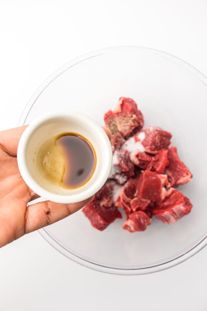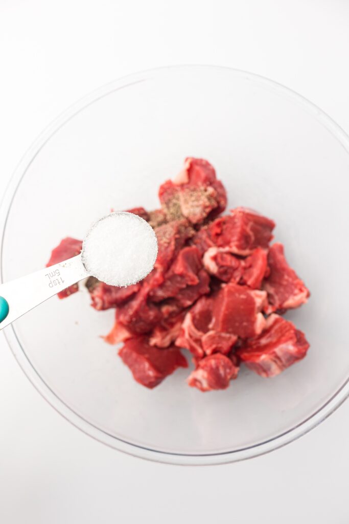 Toss everything together until every single piece of steak is evenly coated. Don’t be shy—make sure they’re well-seasoned.
