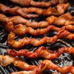 Cook the bacon at 400°F (200°C) for about 5 minutes. The exact time will depend on your air fryer and how crispy you like your bacon. I find that 5 minutes is the sweet spot for crispy-chewy, but if you like it extra crunchy, you might go for 6 or 7 minutes. Just keep an eye on it the first time you make it!