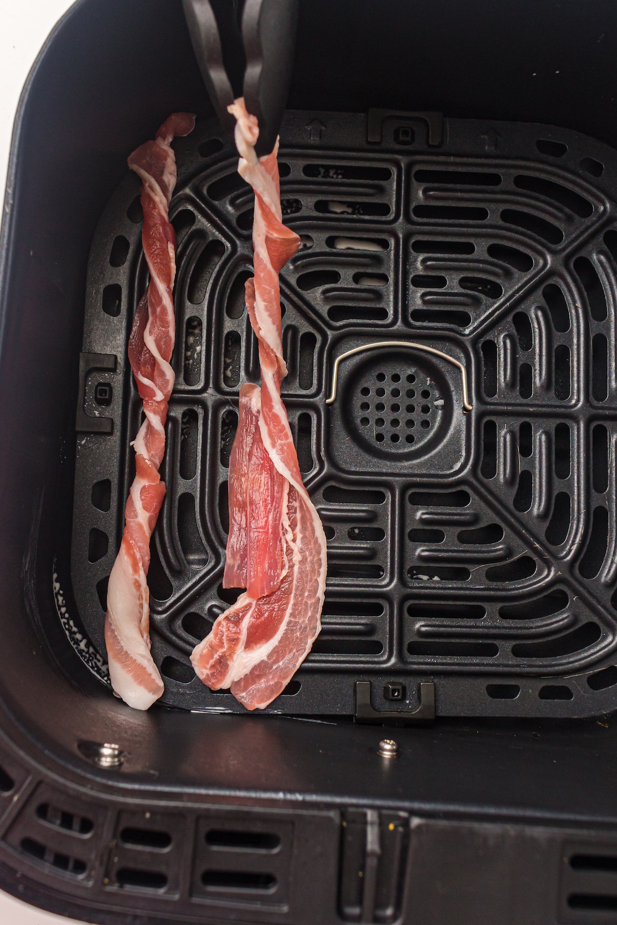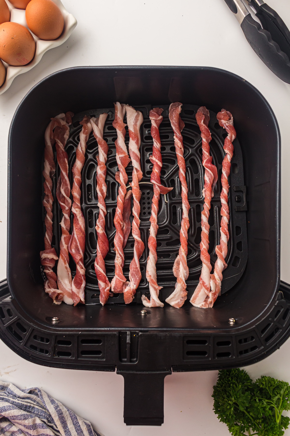 - Place the twisted bacon in the air fryer basket, ensuring they are not overlapping.